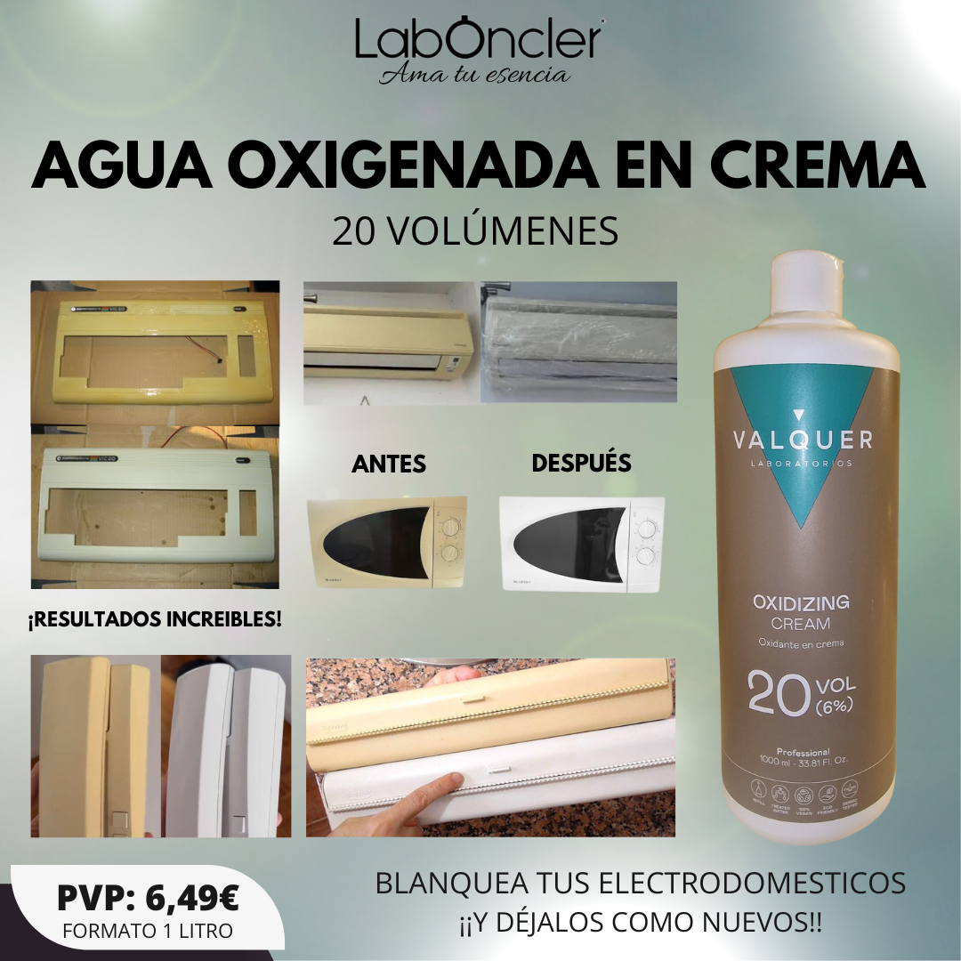 Emulsión oxidante formulada con agua oxigenada de 20 volúmenes, Concentración 6%.