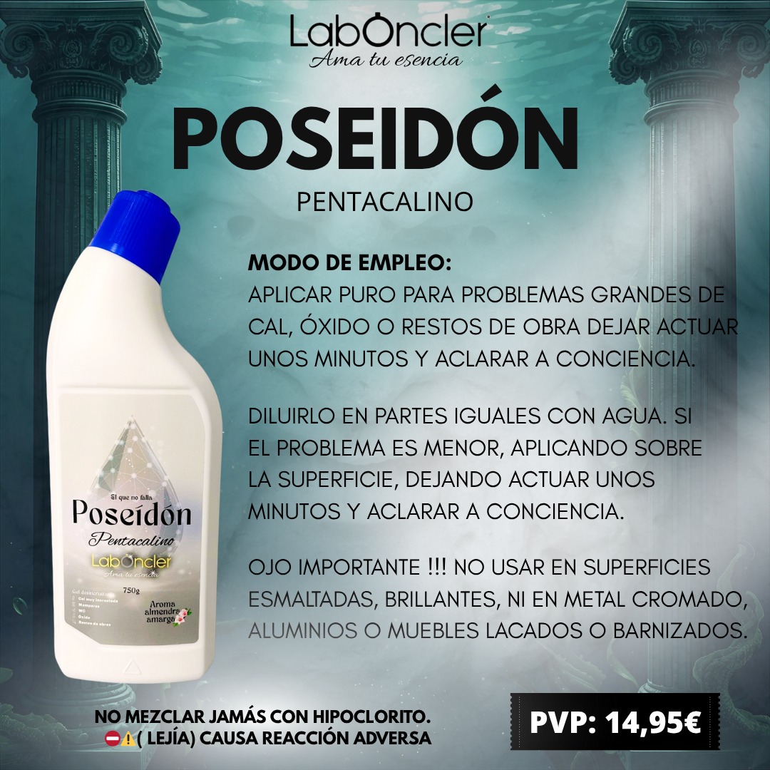 POSEÍDON Pentacalino…El nuevo Gel limpiador mega desincrustante para wc , sanitarios y restos de obra de Laboncler